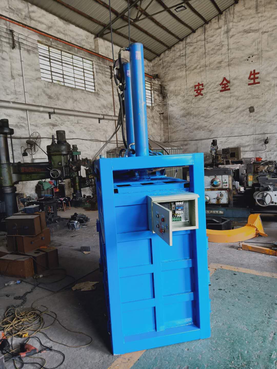 深藍色的120噸立式廢紙稻草打包機已于昨天下午3點左右正式運往漯河市中心的一個小村莊里,他經營了一家專門打包廢紙,稻草,秸稈,易拉罐,飲料瓶等這些廢棄物料的場地,因為資金不足導致我無法訂購大型臥式打包機設備,現在先用小型的立式打包機先用著,等到經濟效益成績上去了,我再來你廠訂購大型的臥式打包機設備.